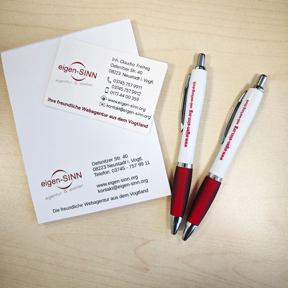 Als Kleinunternehmen oder mittelständischer Betrieb wissen Sie: Ein professioneller Auftritt ist das A und O. Dabei geht es nicht nur um die Website, sondern auch um Druck und alles, was Ihre Kunden anfassen können – vom Visitenkarten bis zum Firmenschild.